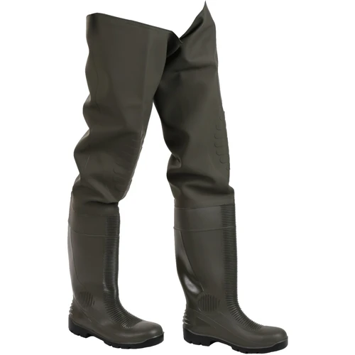 Amblers – Forth – Stivali impermeabili con cosciale – Uomo. Stivali impermeabili di sicurezza con cosciale. In PVC. 100% impermeabile. Puntale di sicurezza. Tacco antistatico e anti-shock. Intersuola anti foro. Con resistenza antiscivolo a superfici di ceramica coperti di acqua e altri materiali pulenti. Suola resistente a oli, grassi, acidi e solventi organici. Resistente fino a -20°. EN ISO 20345:2011. Tomaia: PVC. Rivestimento interno: Tessuto. Ref: UTFS3731