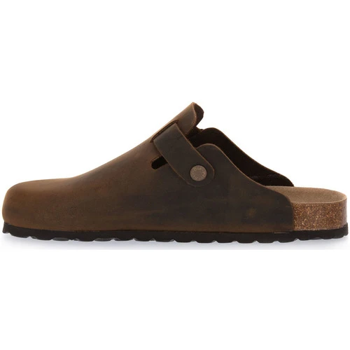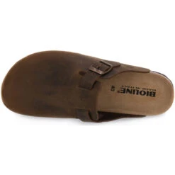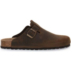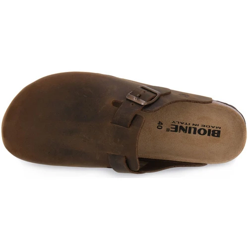Sabot Bioline con tomaia in vera pelle, con cinturino dotato di fibbia in metallo. 100% made in Italy. Plantare dalla forma anatomica in vera pelle e grazie alla speciale mescola in gomma-sughero assorbono l’umidità. Suola: in microporosa. Colore: Marrone.