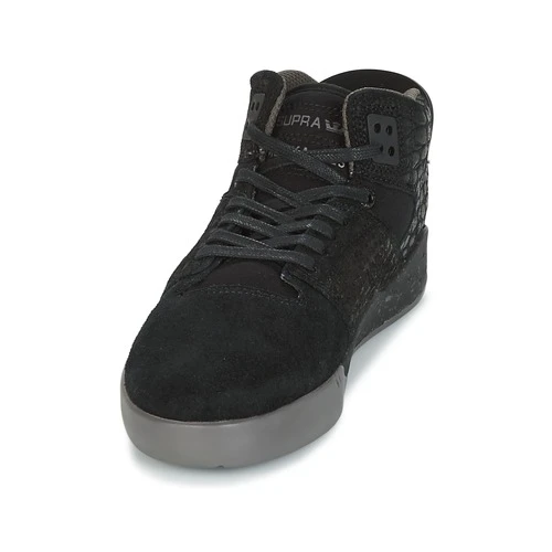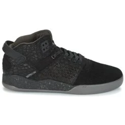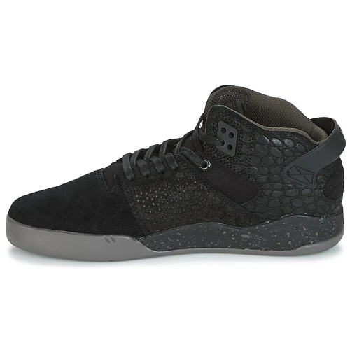 Delle linee che sottolineano un design dinamico ed uno spirito decisamente di tendenza per questa sneaker firmata Supra. Il suo gambale in cuoio e tessuto ed il suo colore nero le conferiscono uno spirito sportivo molto attuale. Costruito su una suola esterna in gomma, il modello Skytop Iii presenta una fodera in tessuto. Un modello che non finisce mai di sedurre i fan della sneaker.